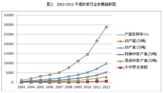 我國從上世紀八十年代開始研究引進干混砂漿技術,九十年代末期開始出現具有一定規模的干混砂漿生產企業。進入二十一世紀以來,隨著國家相關政策的推 動,散裝水泥工作者及干混砂漿生產企業和用戶的積極努力,干混砂漿生產開始呈現蓬勃發展的局面。但是中國的干混砂漿發展很不平衡,長江三角洲、珠江三角洲 和渤海地區是干混砂漿發展最快的三個地區,約80%的干混砂漿企業都集中在此。目前,中國已成為干混砂漿發展的新興市場,但是目前,中國干混砂漿產量僅占 世界干混砂漿產量的20%左右,干混砂漿還有很大的發展空間。